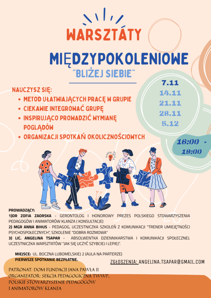 Zapraszamy na warsztaty inspirowane książką dr Zofii Zaorskiej „Dodać życia do lat.”